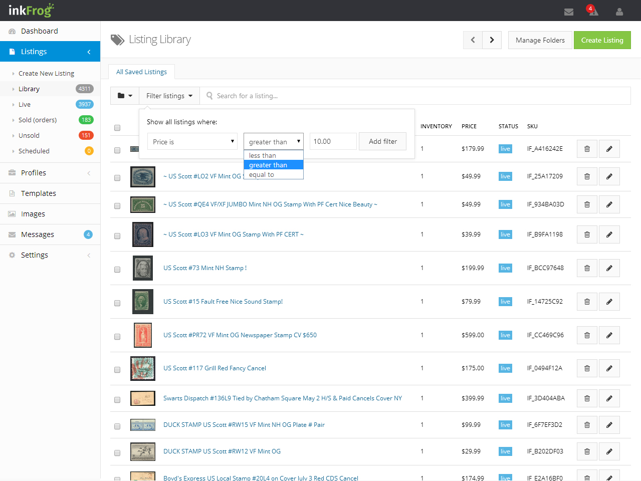 With professional templates, scheduled listings, unlimited images, custom profiles, auto feedback and so much more… InkFrog is an amazing auction lister tool. If you have a bunch of eBay accounts and want an easier way to mange them.. then Inkfrog is what you need (yes it works with multiple accounts).